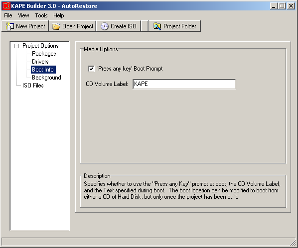 With the release of WinPE 2.x, Microsoft introduced a new method of distributing WinPE, namely using pre-built Wim files included with the Windows Automated Installation Kit (WAIK). In order to build a new WinPE environment with this method the user must typically utilize a set of command line utilities and scripts from the WAIK, which can often be an arduous or confusing process to manage. KAPE was created to simplify this process, starting with the origination of the WinPE project through the creation of the final WinPE ISO.