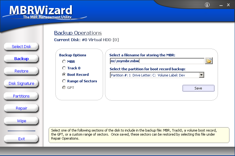 For over a decade, MBRWizard has been a trusted solution to manage, protect, repair, and recover the Master Boot Record (MBR) on both PCs and Server class computers. The MBR contains the vital information required to boot your computer and maintains the data structure of the hard disk... how are you safeguarding your critical data from failure or corruption? What would happen if you weren't able to access your documents and pictures due to a lost partition? MBRWizard 4.1 is designed to protect these areas by backing up the critical disk sections before disaster strikes... and can help repair the most critical sections in case of failure or corruption.